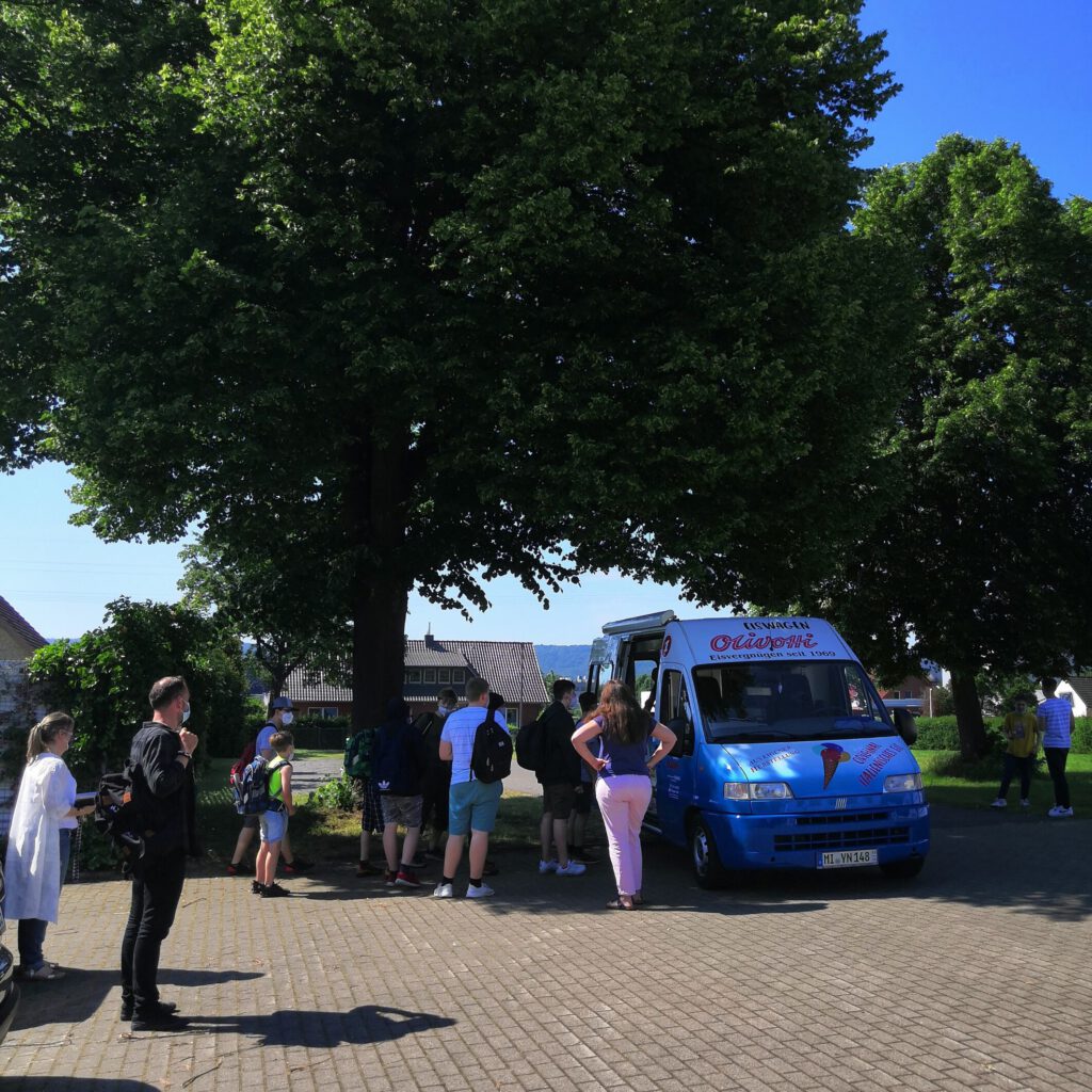 Bei tropischen Temperaturen freuten sich die Schülerinnen und Schüler am Donnerstag, als sie unerwartet Besuch vom Eiswagen bekamen. Die Schülerinnen und Schüler durften sich zwei Eiskugeln in der Waffel aussuchen, die Kosten dafür übernahm der Förderverein der Schule. Die Erfrischung kam natürlich bei allen gut an!