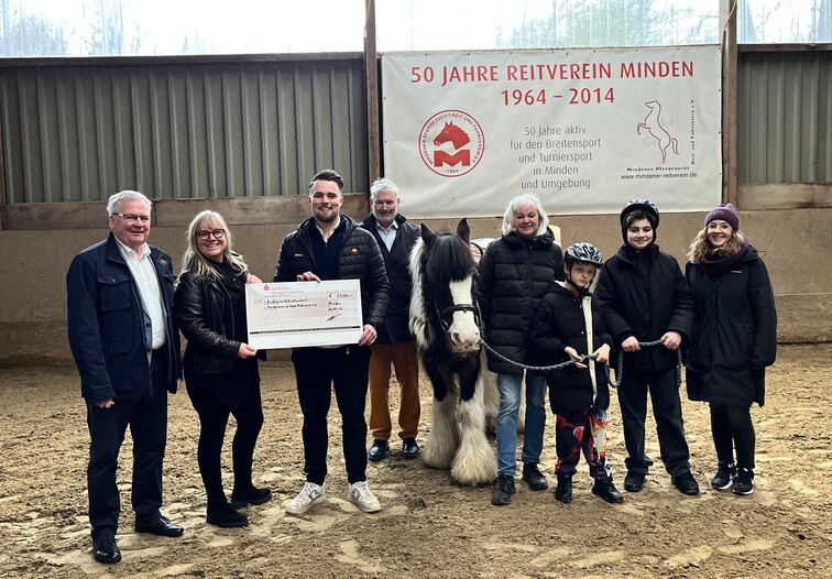 Große Freude an der Schule Rodenbeck: Justin Möller und Frank Neidmann vom Bürgerbataillon haben dem Förderverein der Schule eine Spende in Höhe von 5.500 Euro überreicht. Hierbei handelt es sich um die Sammlung vom traditionellen Grünkohlessen des Bataillons aus dem vergangenen Januar. Die Spende wurde zusätzlich von der Sparkasse Minden-Lübbecke und dem Stadtoffizierskorps großzügig aufgestockt. Mit dem Geld soll gezielt die Finanzierung der Reittherapie für die Schülerinnen und Schüler unter der Leitung von Angelika Sting vom Mindener Pferdezucht- Reit- und Fahrverein e.V. unterstützt werden – ein Angebot, das für die SchülerInnen des Jahrgangs 5 einen wichtigen Beitrag zur persönlichen Entwicklung leistet.
