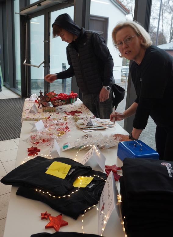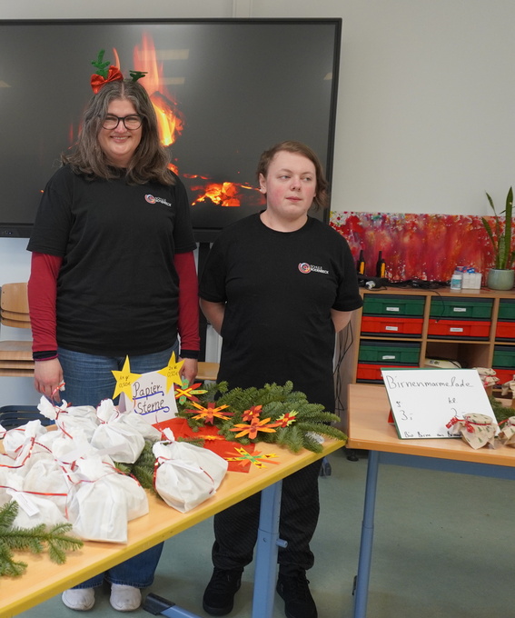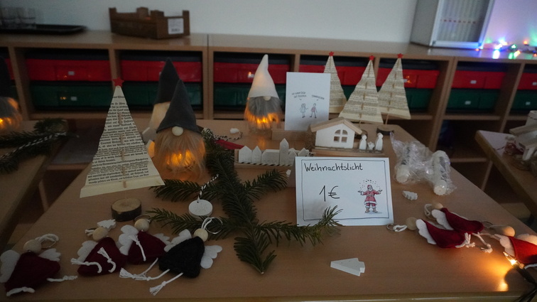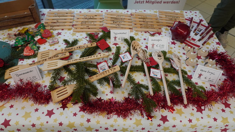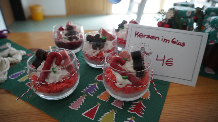 Jede Lerngruppe hatte im Vorfeld fleißig gebastelt und gewerkt und dabei eine Vielfalt an Weihnachtsschmuck hergestellt. So konnten u. a. handgemachte Kerzen, Weihnachtsanhänger, weihnachtliche Grußkarten sowie diverse dekorative Holzobjekte zu einem kleinen Preis erworben werden. Auch selbstgemachte Hundeleckerlis waren im Angebot. Darüber hinaus war auch für das leibliche Wohl der Besucher gesorgt. Zur persönlichen Stärkung gab es u. a. herzhafte Angebote wie Bratwurst , Pommes und Reibekuchen sowie süße Leckereien wie Waffeln und Muffins. Seinen Durst konnte man bei einem leckeren Weihnachtspunsch stillen oder sich ein Softgetränk kaufen.